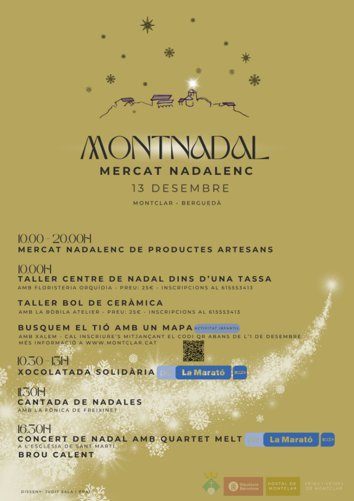 El Montnadal 2025 se celebra el 13 de desembre, de 10 a 20 h, a Montclar. Mercat de productes artesans, tallers, activitats infantils i concerts de Nadal. Entrada gratuïta.