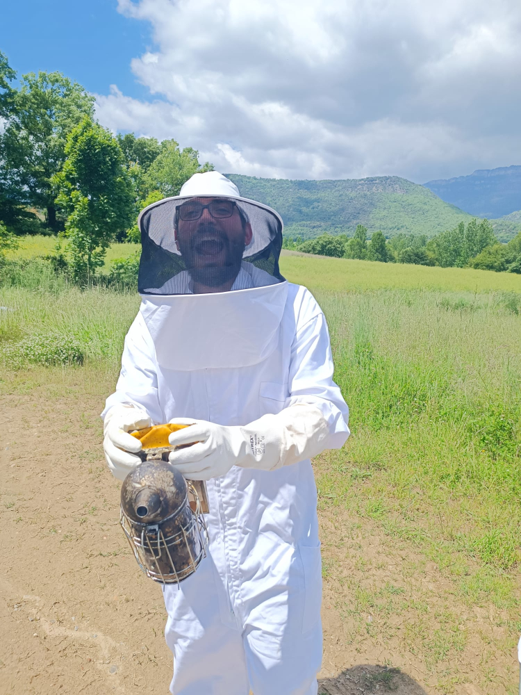 És per això que oferim la possibilitat de ser apicultors per un dia! Si veniu a disfrutar de les nostres visites guiades us endinsareu en un món molt més complex del que us podeu imaginar, aprendreu mil coses noves i vosaltres mateixos fareu d’apicultors! Us posareu els tratges, obrireu les caixes i us envoltareu de milers d’abelles!