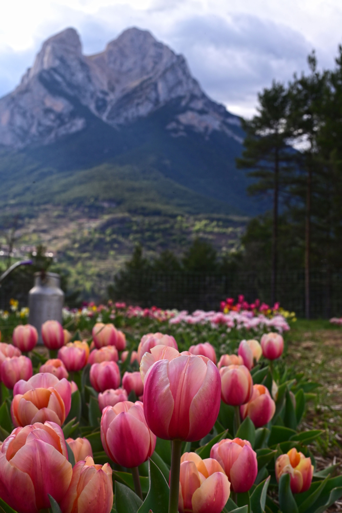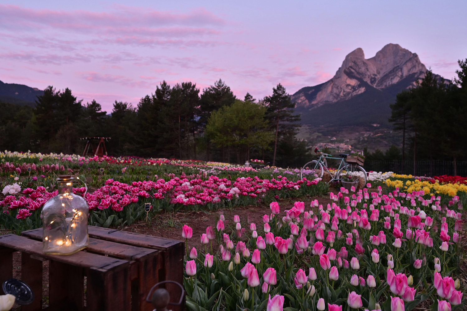 Cultiu de tulipes i dàlies als peus del Pedraforca.