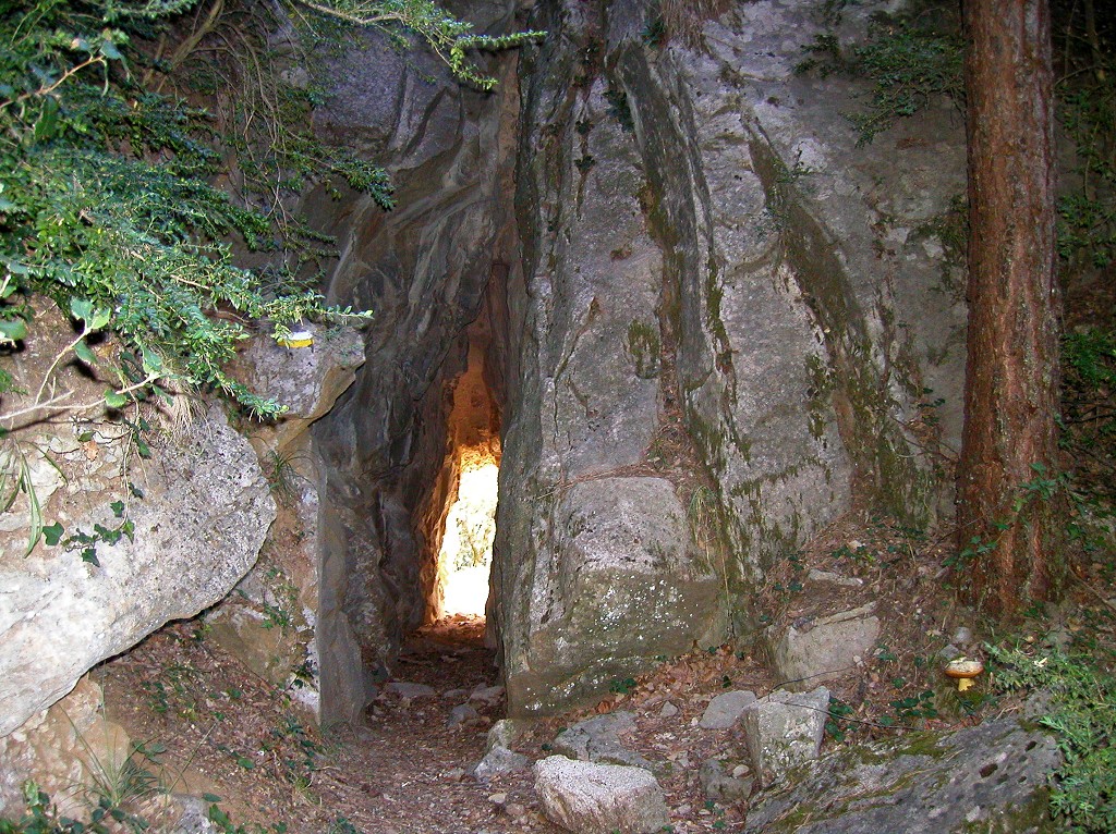 La ruta continua pujant per la pista fins a la Collada de Roset on l’haureu de deixar novament pel camí antic, a la dreta. Després de creuar una pista, pujareu fins a trobar un dipòsit amb una font d’aixeta per omplir les cantimplores. A partir d’aquí el camí va serpentejant costes i roques fins que s’arriba a la mina de l’Aigua, un túnel excavat a la roca per salvar l’esperó rocós. Abans d’entrar-hi, val la pena fixar-se en la paret de sobre: una alzina ha aconseguit introduir les arrels dintre de la roca i extreure menjar d’on sembla impossible.