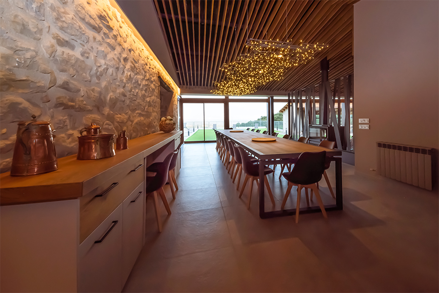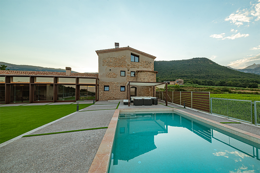 La casa està preparada per atendre a grups grans fins a 20 persones. Té de 8 habitacions. Cada una disposa del seu bany privat amb dutxa. Hi ha piscina climatitzada amb SPA per gaudir-ne tot l’any.