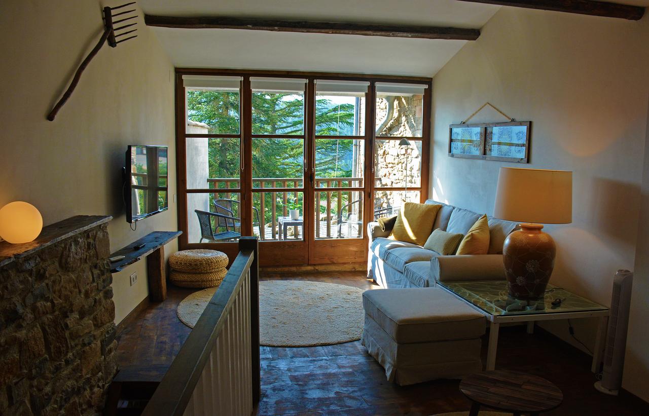 La construcció, de pedra i fusta, està totalment restaurada potenciant per un cantó el caràcter rústic de la casa i per l’altre equipant-la de totes les comoditats i instal·lacions actuals per oferir una estança confortable.