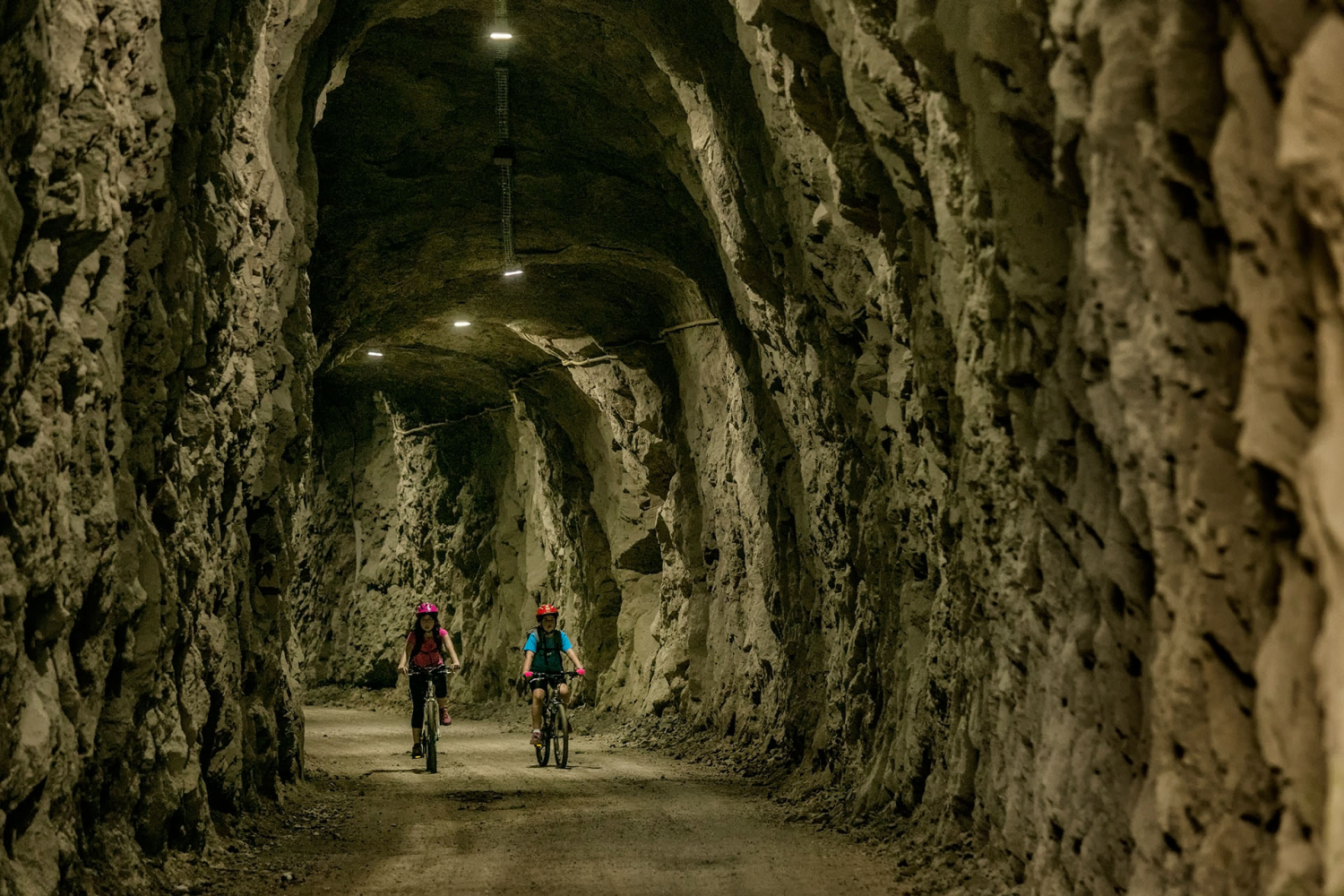 Ubicats a l’aparcament d’autocars, al nord de la rotonda principal (i única) del poble, la ruta comença en direcció nord, seguint sempre el camí principal (el més marcat). Aviat apareixen els primers túnels (en teoria il·luminats, tot i que a vegades alguns actes vandàlics els malmeten) i el pont que deixa el riu a ma dreta de la ruta. Al 4.5 km apareix el fantàstic pont medieval de Pedret.