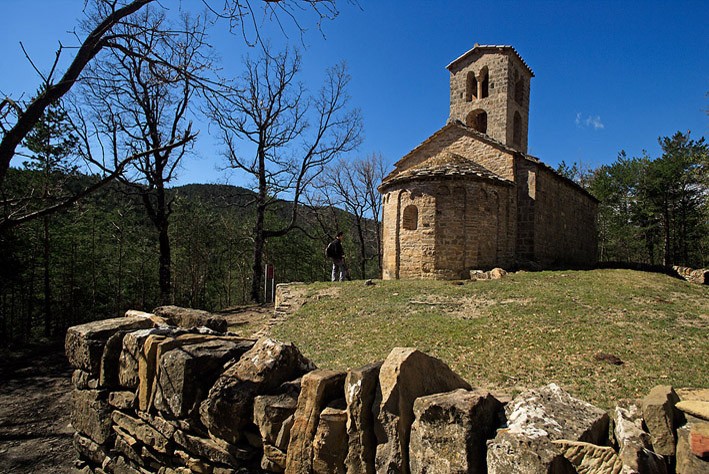 Durant la invasió musulmana de la península ibèrica, hi va haver una altíssima concentració de població al llarg del Pirineu (i Prepirineu) català. Molta gent va fugir cap a les muntanyes buscant en aquest territori la seguretat i el refugi que no trobava a les planes de l’interior. Això explica el gran nombre d’ermites i esglesioles romàniques escampades arreu del Pirineu, en part per “marcar” i confirmar un territori cristià davant la invasió musulmana, en part per trobar també el refugi en la fe davant d’una situació adversa. La majoria d’aquestes esglésies feien la funció de parròquies amb la intenció d’agrupar els habitants d’una determinada àrea. És per aquest motiu que no només hi un gran nombre d’esglésies romàniques al Pirineu (i Prepirineu) sinó que també, la gran majoria d’esglésies i monestirs que hi ha en aquest territori són, precisament, romàniques. En aquesta ruta s’observa una magnífica església romànica –Sant Sadurní de Rotgers– ubicada actualment en un indret força aïllat, però que probablement, mil anys enrere, es trobava envoltada de més habitatges propers dels que hi ha actualment. La ruta no és gaire llarga en recorregut però el desnivell acumulat, sobretot fins a Sant Sadurní, és força considerable.