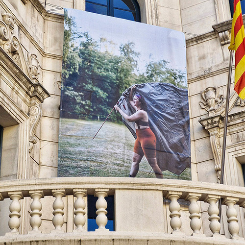 A la plaça de Sant Pere de Berga s’hi poden veure les sis fotografies guanyadores del CÍCLICK, el Concurs Internacional de Fotografia Ciclista, exposades en lones de gran format en diferents espais de la plaça.