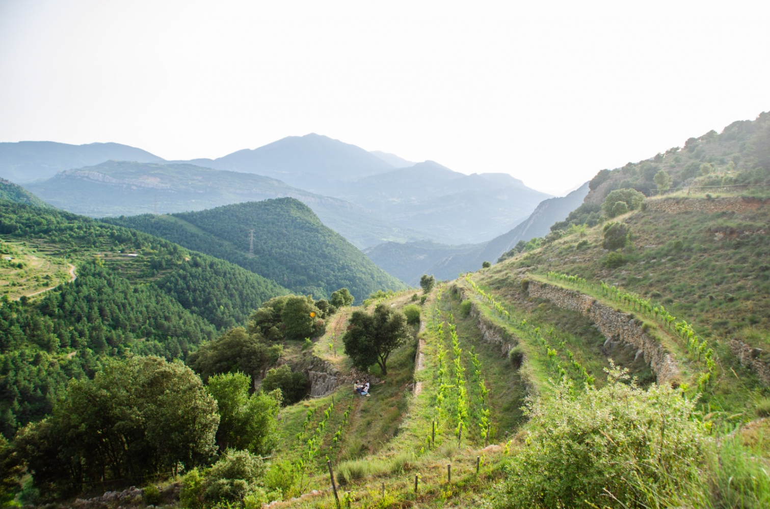 With the mountains in the background, the vineyards of the Bauma de les Deveses, in Berguedà, reclaim an agricultural landscape on dry stone terraces that show the efforts and knowledge of the men who worked this land for centuries.
