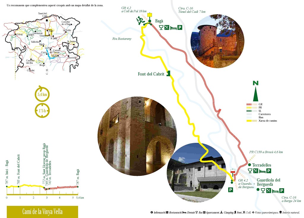 Esta ruta se puede hacer guiada, contratando los servicios de guía en la oficina de turismo de Bagà o autoguiada a través de unos folletos que se entregan desde la misma oficina.
