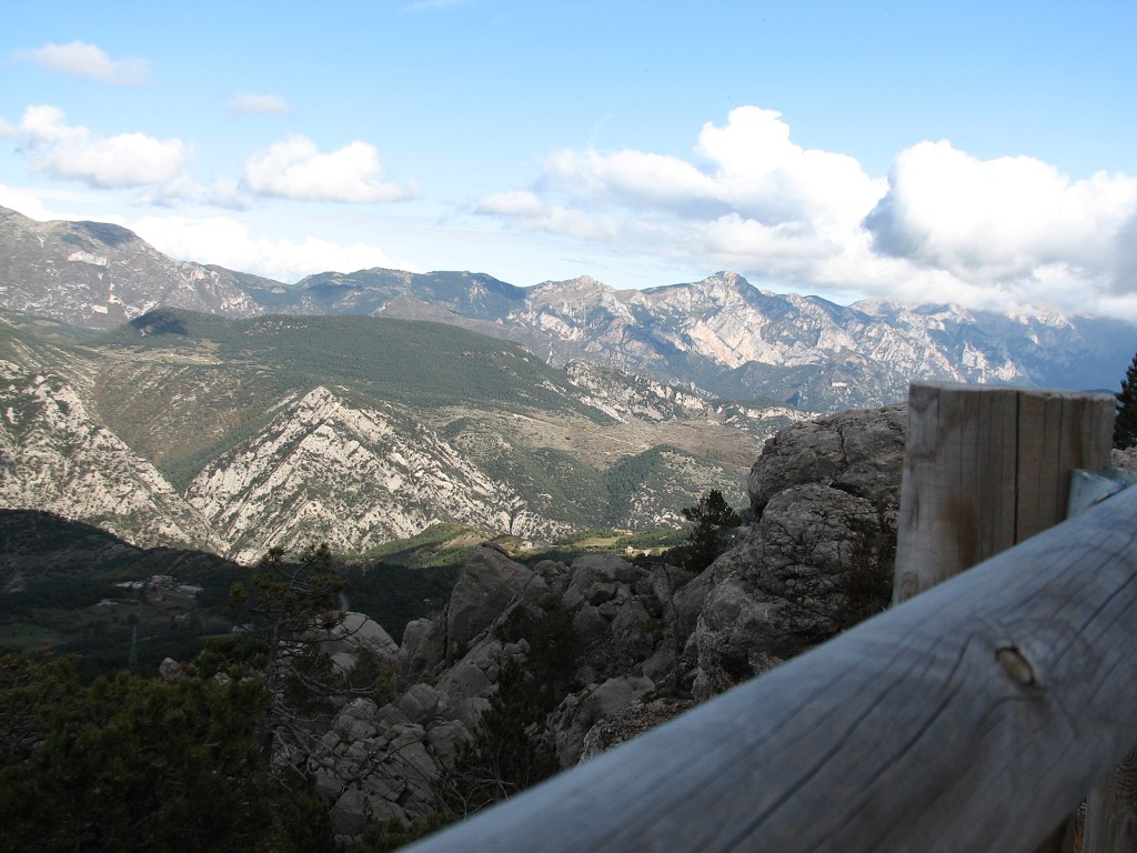 Al final de la pista, sube un nuevo camino con fuerte pendiente. Es parte de la misma ruta de la naturaleza. Llegamos a otra planicie con un magnífico mirador hacia las sierras del norte, incluido el Pedraforca. El camino pasa junto a los restos de una barraca, se trata de otra pequeña zona de cultivo. El camino, finalmente, llega a arriba, giramos a la izquierda por el camino balizado en medio del bosque y, en 10 minutos, estamos en la Pleta de la Vila.