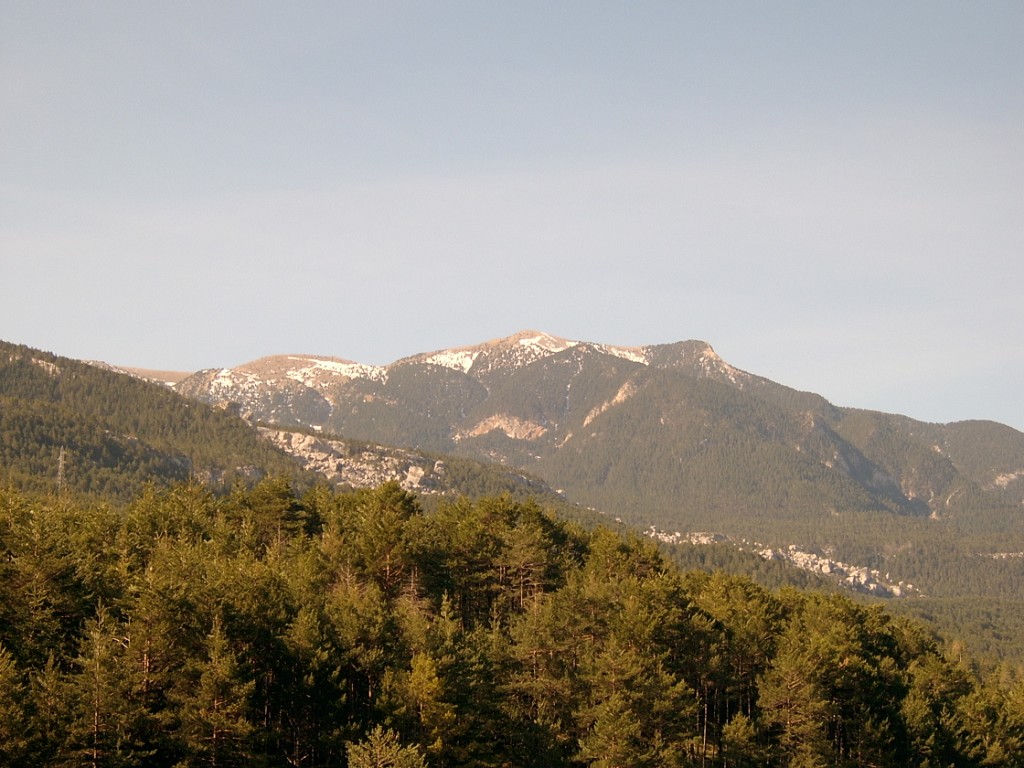 Vous traverserez le torrent des Llobateres et commencerez à avancer nettement vers le nord-est. Vous monterez au milieu de la forêt de pins en zigzaguant. De là, si vous regardez vers le nord, vous verrez le Pedraforca et, à ses pieds, le village de Saldes.