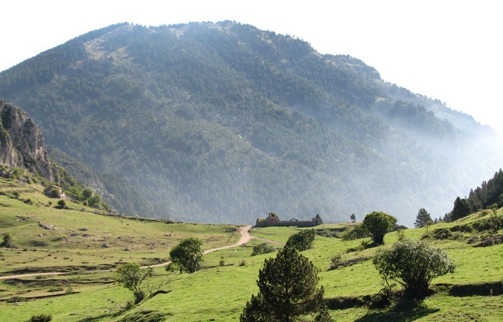 Une fois que vous avez bu et rafraîchi si vous avez besoin de la fontaine, vous trouverez juste après la mairie la bifurcation des routes; Suivez la piste goudronnée en direction du Coll de la Veça, ici vous verrez le chemin qui monte à droite, où vous reviendrez.