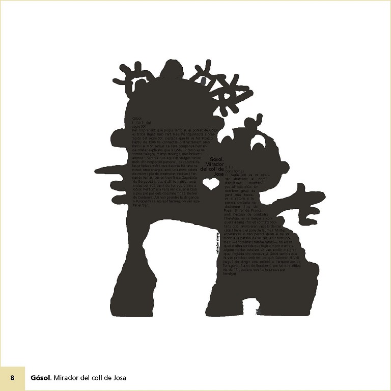 Aussi surprenant que cela puisse paraître, le village de Gósol est étroitement lié à l'art le plus avant-gardiste et prestigieux du XXe siècle. En 1906, Picasso y séjourna et dès lors, le village fut directement connecté à Paris et au monde entier. Fernande Olivier, sa compagne expliquait qu'à Gósol, Picasso devint " joyeux, moins sauvage, plus brillant et plein d'entrain ". Il semblerait que ces voyages étaient synonymes d'introspection personnelle, de recherche de soi et que l'artiste en revenait ressourcé, plein d'énergie, avec une nouvelle palette de couleurs et empli de créativité. Picasso et Fernande arrivèrent en train à Guardiola de Berguedà puis rejoignirent Gósol à dos de mules, en empruntant le chemin, muletier. Pour rentrer à Paris, ils traversèrent le Cadí à pied, par le passage des Gosolans, jusqu'à Bellver de Cerdanya. Là ils prirent la diligence à Puigcerdá et à Ax-les-Thermes, où ils poursuivirent leur voyage en train.